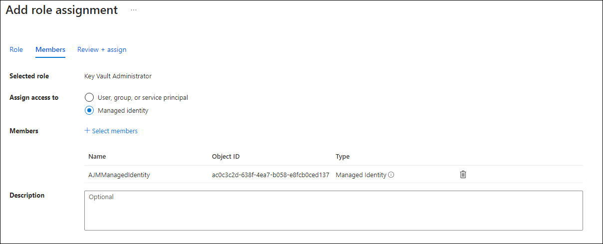 Add the managed identity you created earlier.