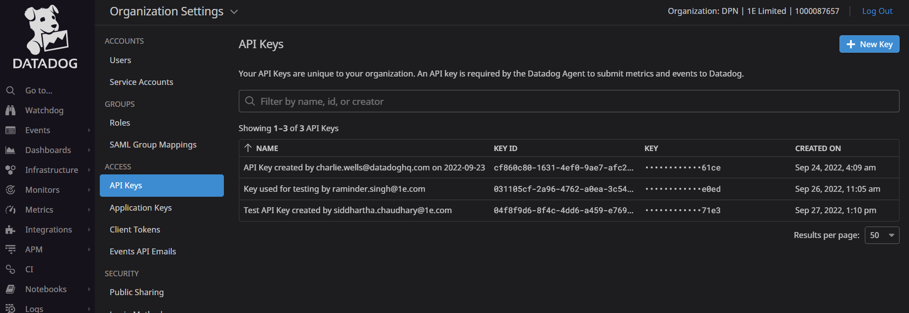 DatadogKey - Specifies the Datadog API key requires for authentication as fetched in step 1 above