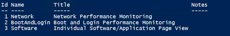 This cmdlet returns available investigation categories within the Experience subsystem.