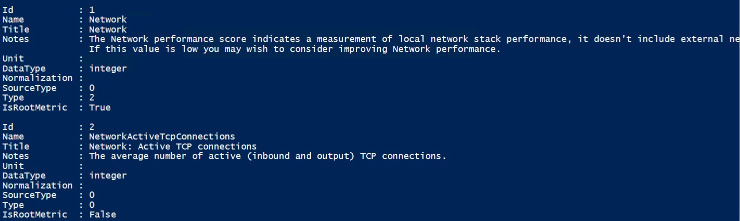 This cmdlet returns information about all Experience metrics or information for a specific metric by name or Id.
