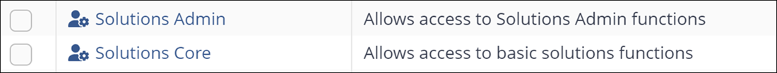 Solutions Admin: For access to Solutions Admin functions