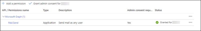 Microsoft Graph API Application permission (Mail.Send) will enable your Solution to send notification emails to admins based on your configured metrics.