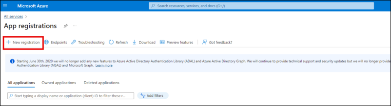 Login to your Microsoft Azure portal, go to App registrations.