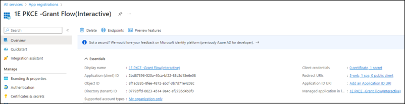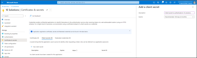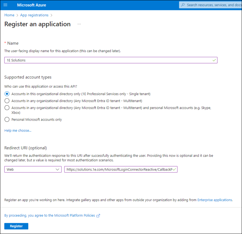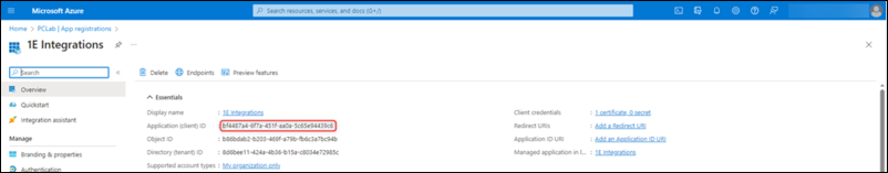 The Application (Client) Id of the 1E Integration AAD application must be registered with the Solution.