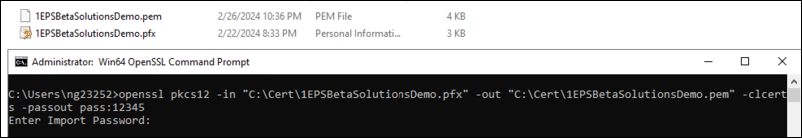 Use Powershell or OpenSSL to extract the encrypted private key. For this example we have used Open SSL to extract the key.