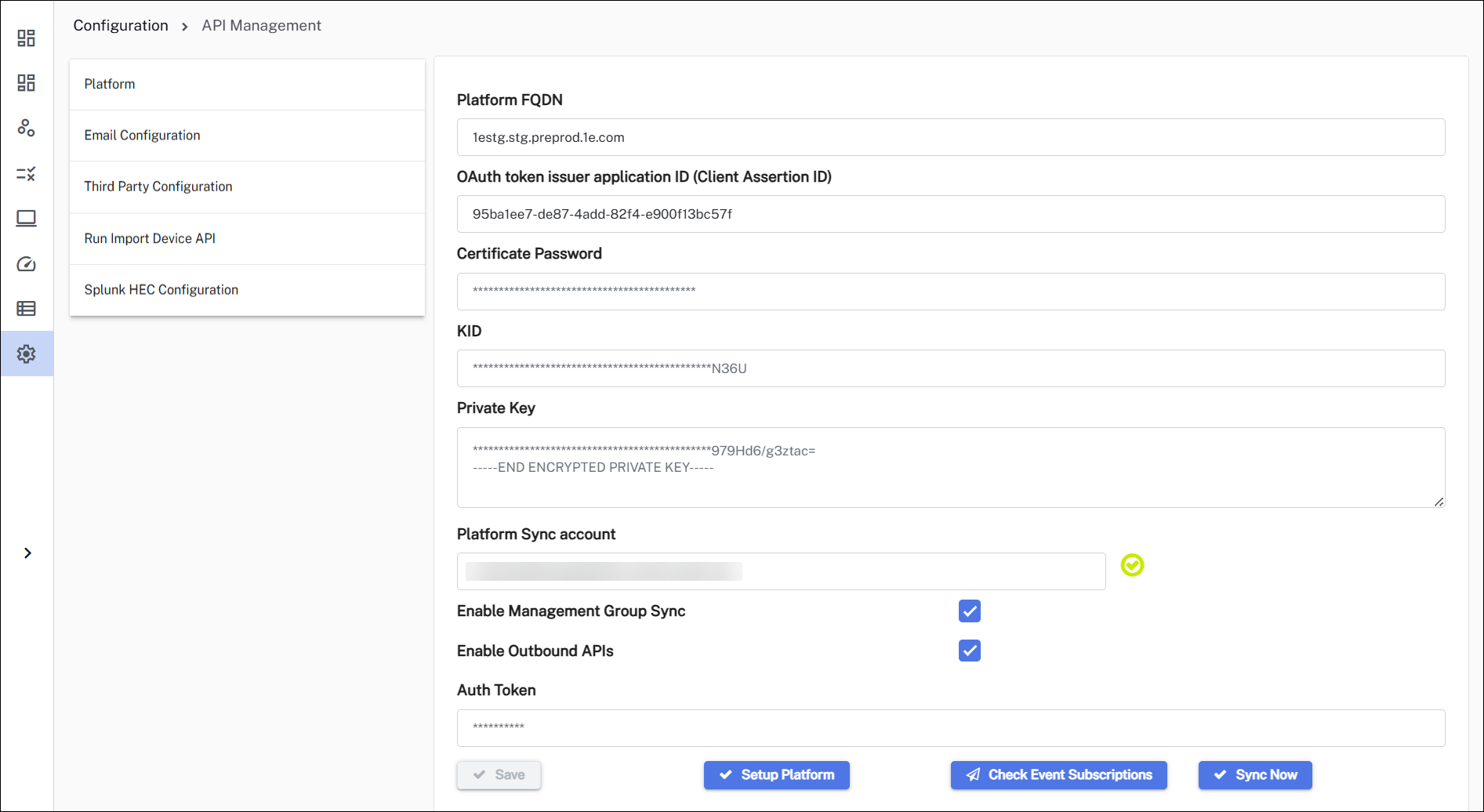 Platform Sync account