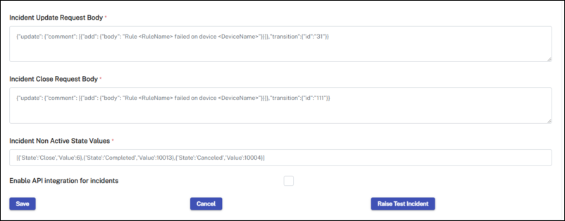 The incident body must include all the required parameters.