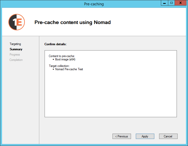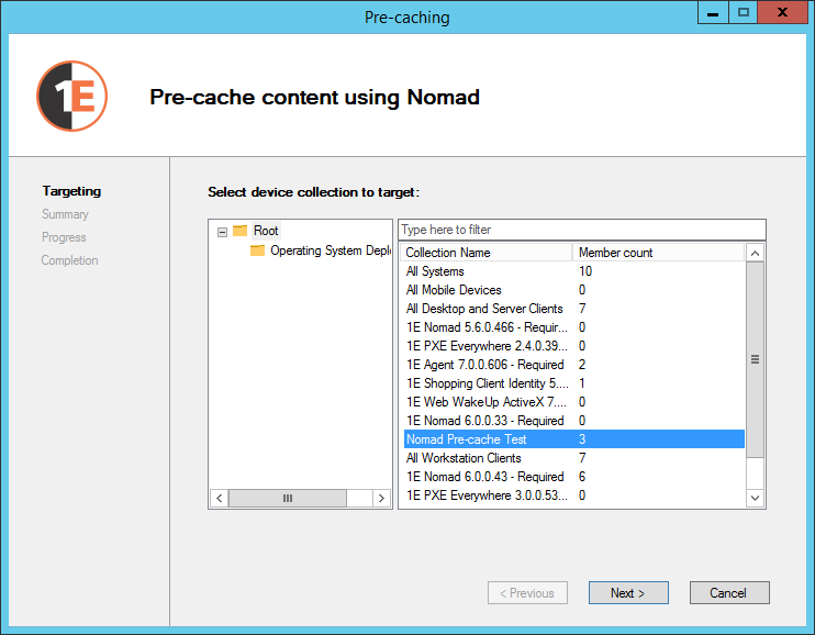 On the Targeting screen, choose the device collection you want to pre-cache.