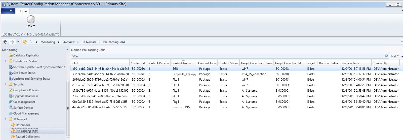 Expand the 1E Nomad node and select Pre-caching Jobs.
