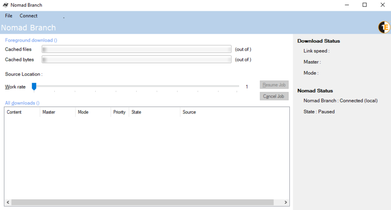 The Nomad branch download monitor is a tool for observing Nomad activity on either the local or a remote computer. The tool is required only for testing and troubleshooting on selected computers, and is not required or recommended for general deployment to all computers. Generally, you only install the download monitor to administrators workstations in Advanced UI mode (UI=1) to enable them to connect any Nomad client.
