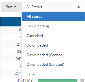 Using the Status filter, you can filter results by download status: