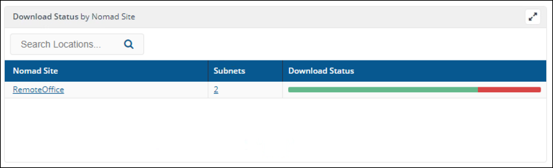 Subnets: The count of subnets included in the Nomad site. Clicking on the number opens a 'drawer' that shows the download status for each subnet in the site. You can click on the subnet in this drawer to view the devices in that subnet that have reported download activity for the Content Title.
