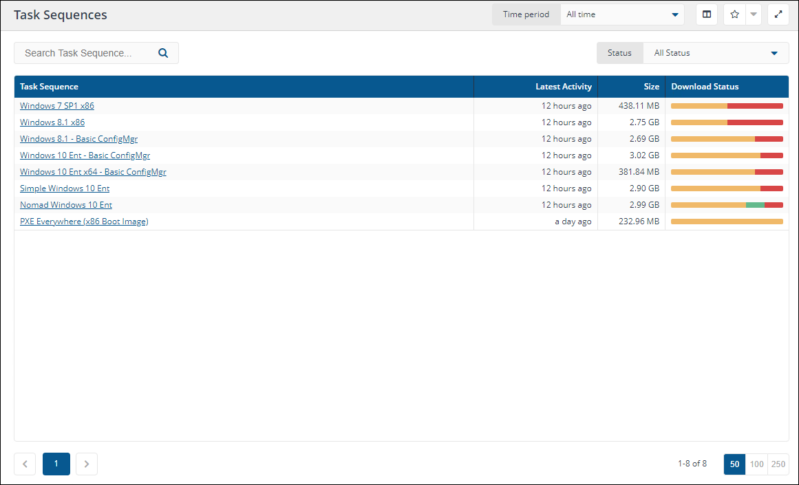 You can use the Time period filter to filter out older activity. For example, selecting Last 30 days will only show Task Sequences for which there has been download activity for any of its reference content in the last 30 days.