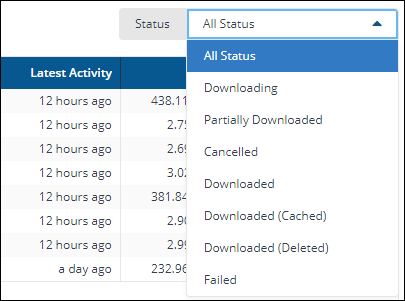 Latest Activity: Indication of how long ago the latest download activity for the selected Content Title occurred on this device.