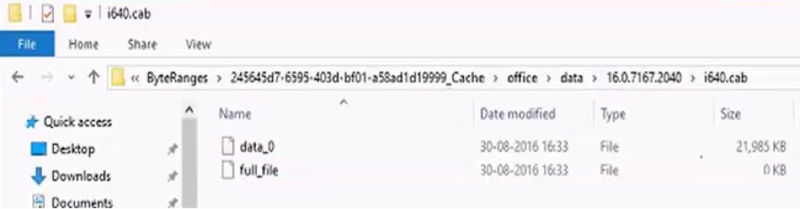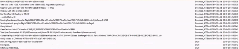 The log extract below shows all five events with the successful download (i641033.cab) from a DP. Office 365 downloads can be either a file or part of a file (byte-range). Our example illustrates a download for an entire file.