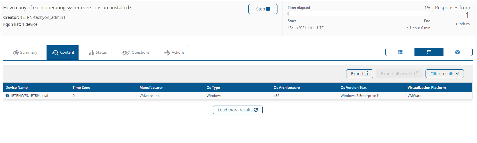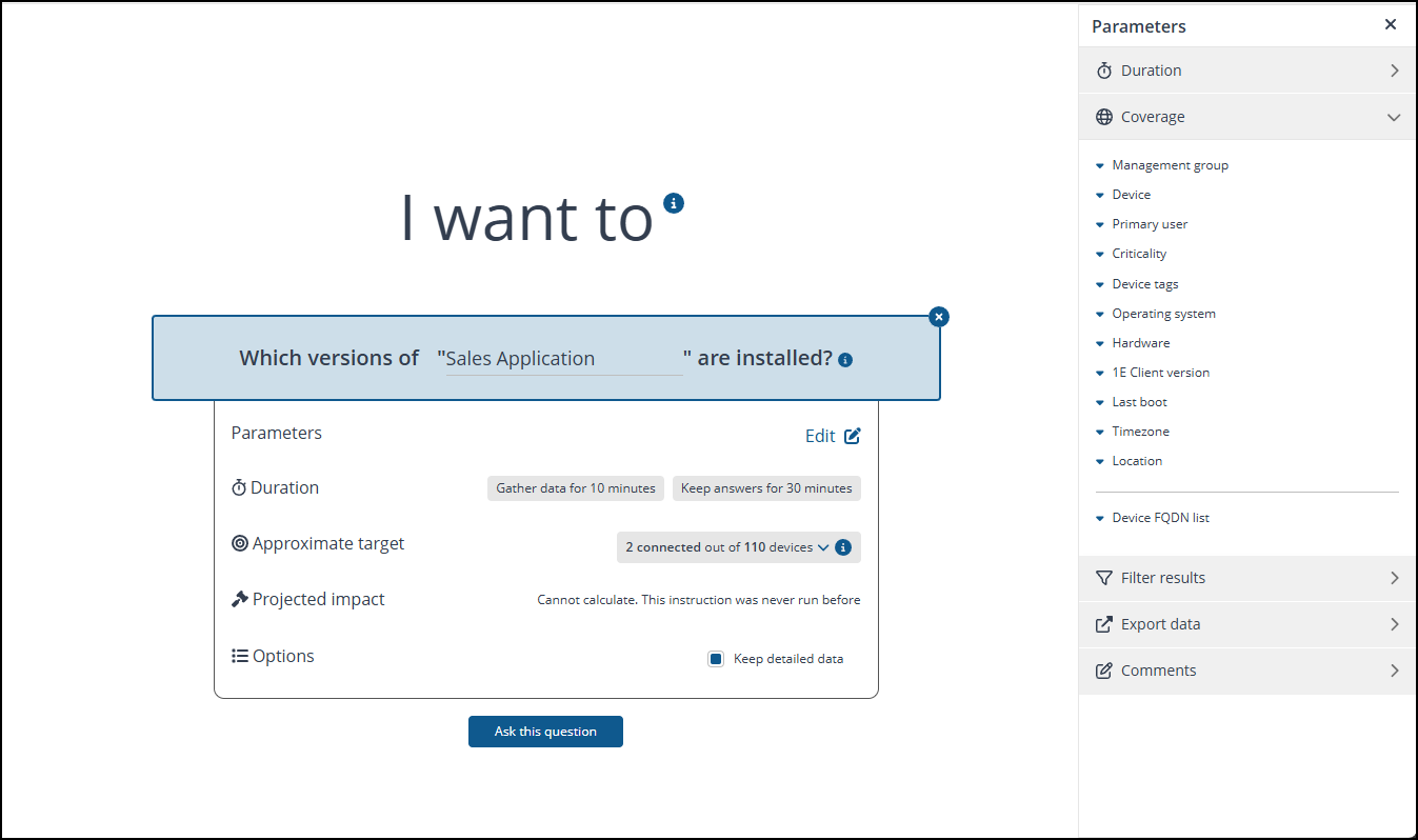 5. Having set the coverage they then click Ask this question, which will ask the question of just those devices with the selected tag set.