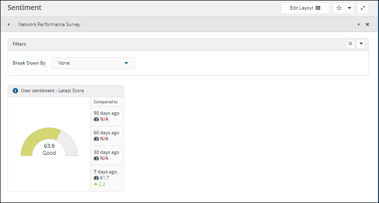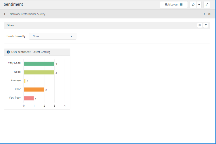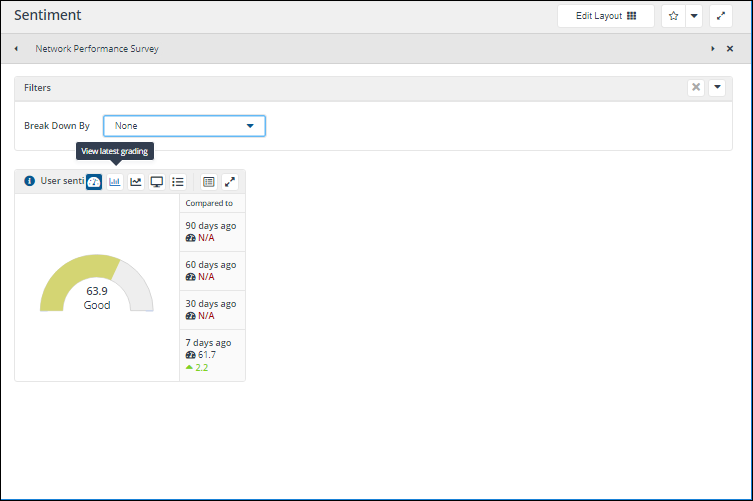 The picture shows the User sentiment - Latest Grading chart before the Break Down By has been applied.