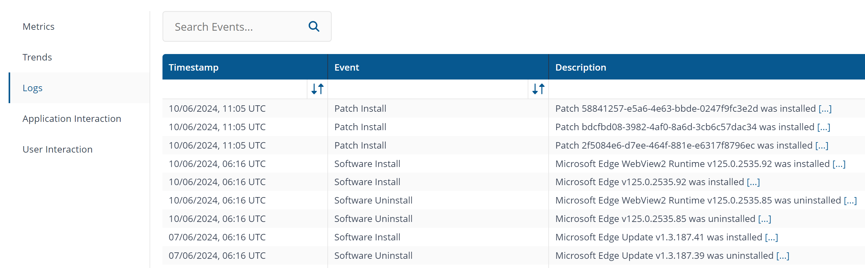 Shows the Windows Event Log entries for significant events. These events are captured as they happen; the device does not wait for the daily digest to send the information to the switch. |