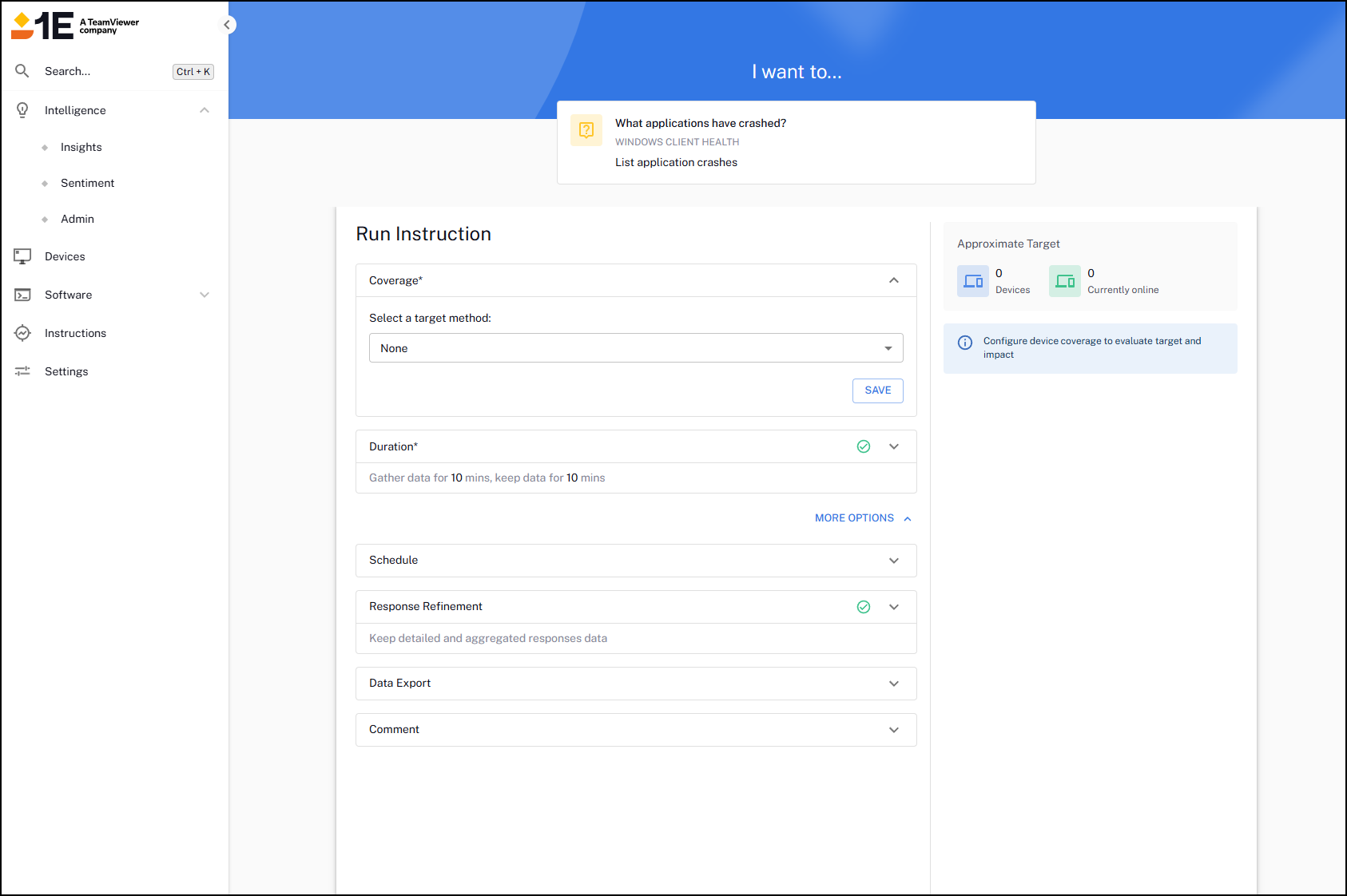 Run instructions from global Search and edit coverage: You can now run instructions directly from Global Search. Once an instruction is selected, you'll be taken to a full-screen instruction configuration page where you can access various options, including editing the coverage. Future iterations will allow you to initiate this process from other areas within the Platform. Refer to Home page, questions, and responses.