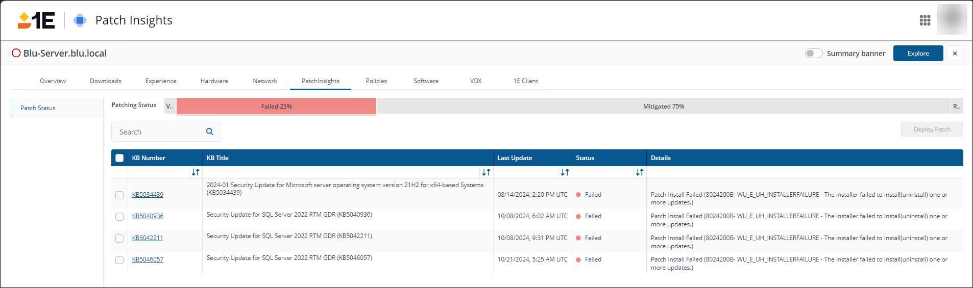 • Enhanced error code visibility: Users can now view error codes for patch deployment failures directly from the device screen, in addition to the patches screen. This change facilitates quicker diagnosis and resolution of issues, enhancing the overall user experience. Refer to Patch Insights.