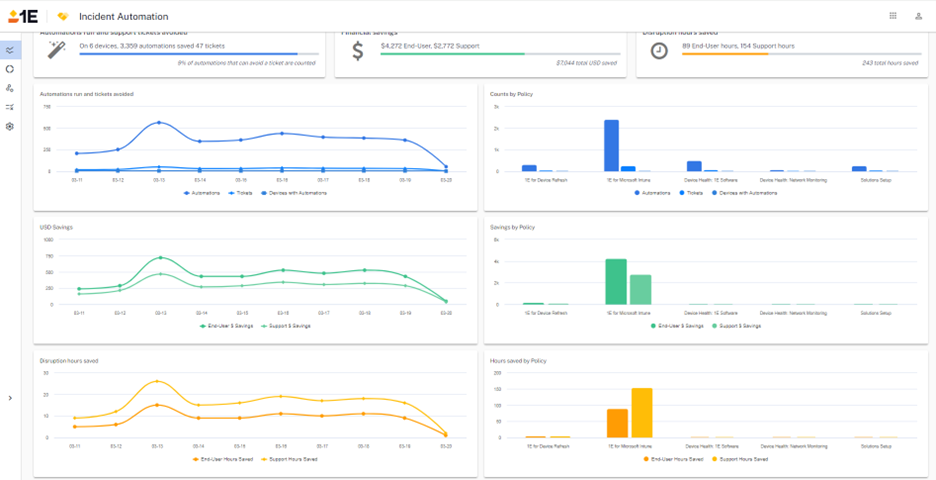 • RoI dashboard to show the effectiveness of Endpoint Automation, and provides a view on the following:
