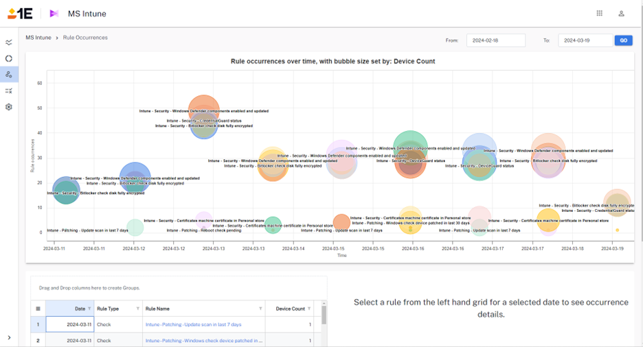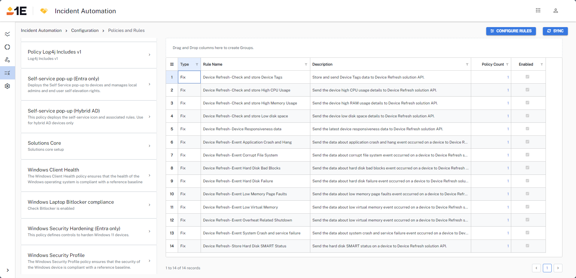 • View of All policies and all Rules enabled in 1E Platform.