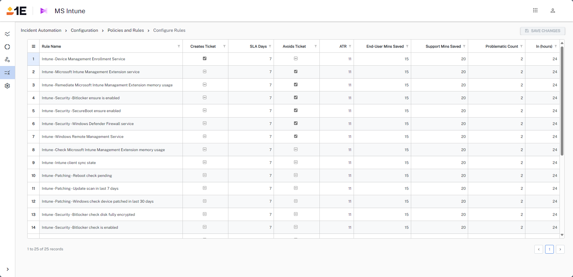 • Admins can configure rules that allow Solutions to open incidents if an Intune rule has failed.