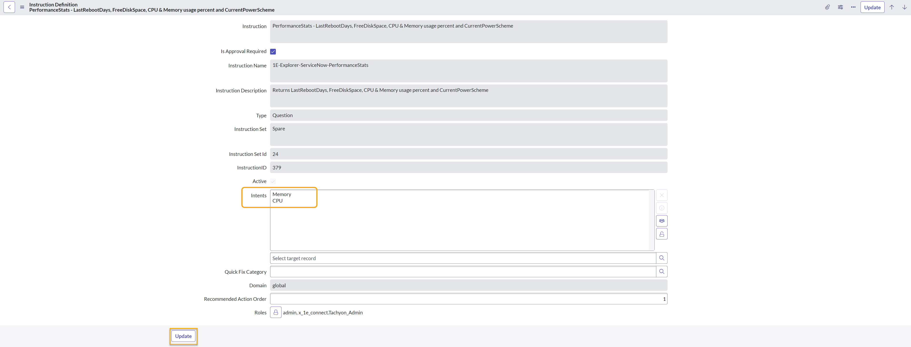 By default, Is Approval Required is true for all the instructions and there are no Intents assigned to any instructions. An admin can update both Is Approval Required and Intents mapping with instructions.