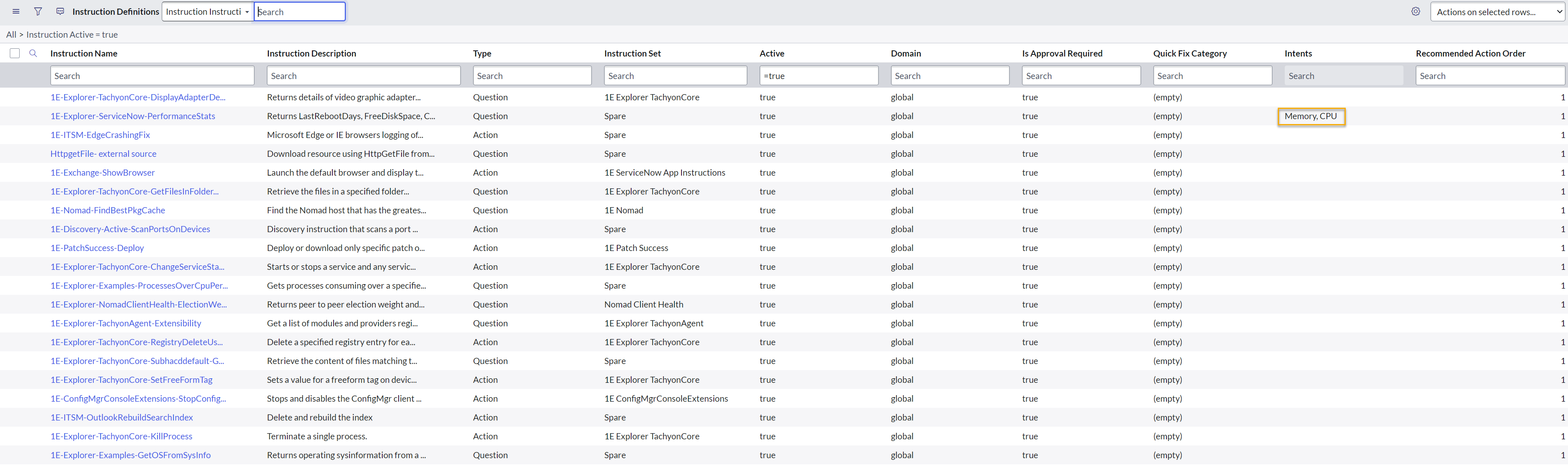 Navigate to 1E ITSM Connect > Instruction Definitions in the application navigator. The Instruction Definitions page opens up with the list of instructions available.