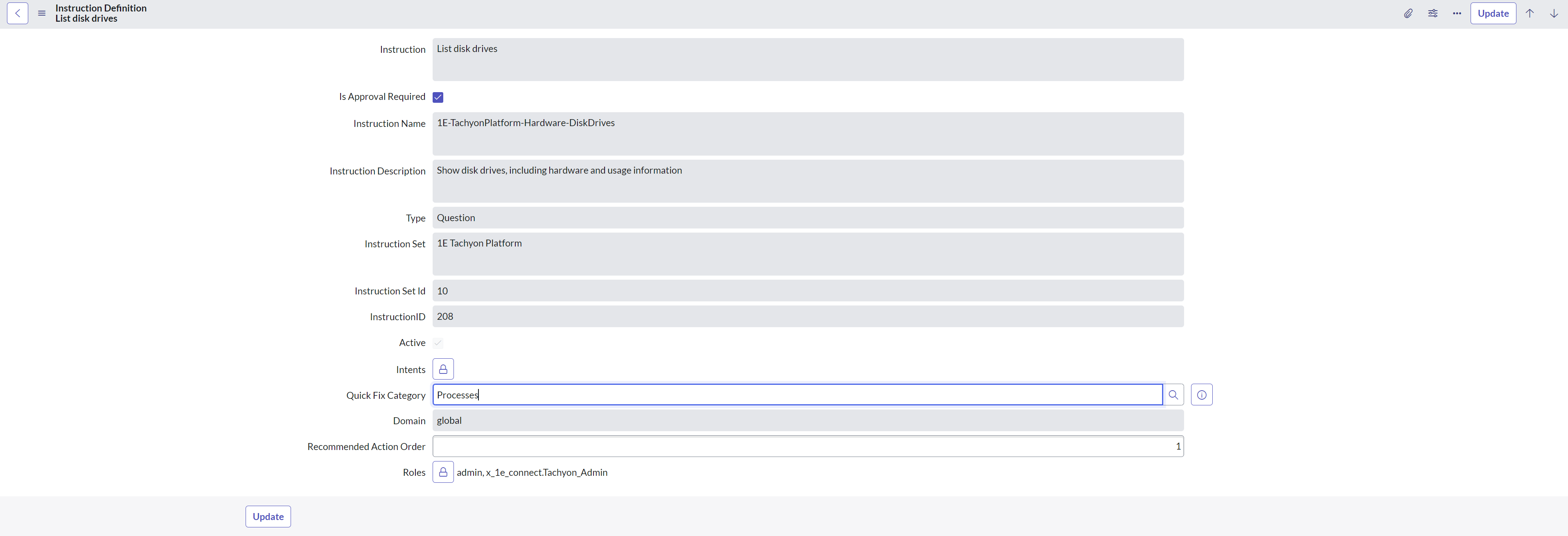 Map the new category with instructions from the Quick Fix Category field on the Instructions Definitions page, as shown below. Begin to type, and a drop-down list will appear showing any matches for the text you've typed. Select one or more from the list and click Update to save the changes.