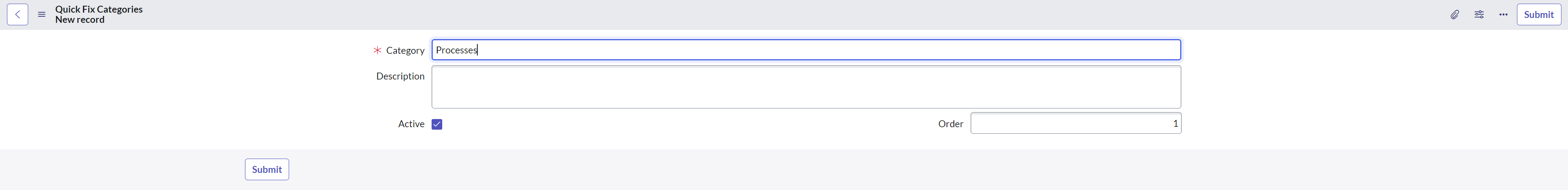 Click New to create a new category as shown in the picture below. Click Submit to save the changes.