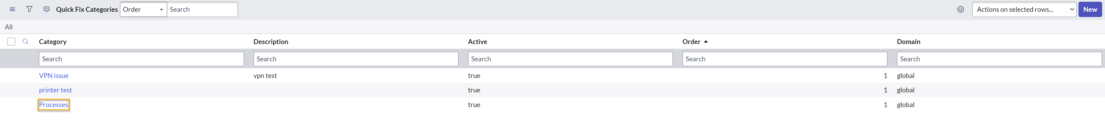 To create a category, navigate to 1E ITSM Connect > Quick Fix Categories under the Administration module.