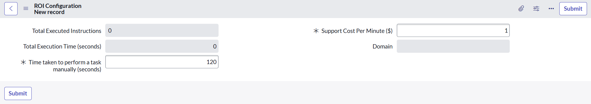 Each triggered instruction with the status of Completed counts for calculating the Potential Savings. For the Potential Savings to reflect in the widget, a record in the ROI Configuration (x_1e_connect_roi_configuration) table must be created first.