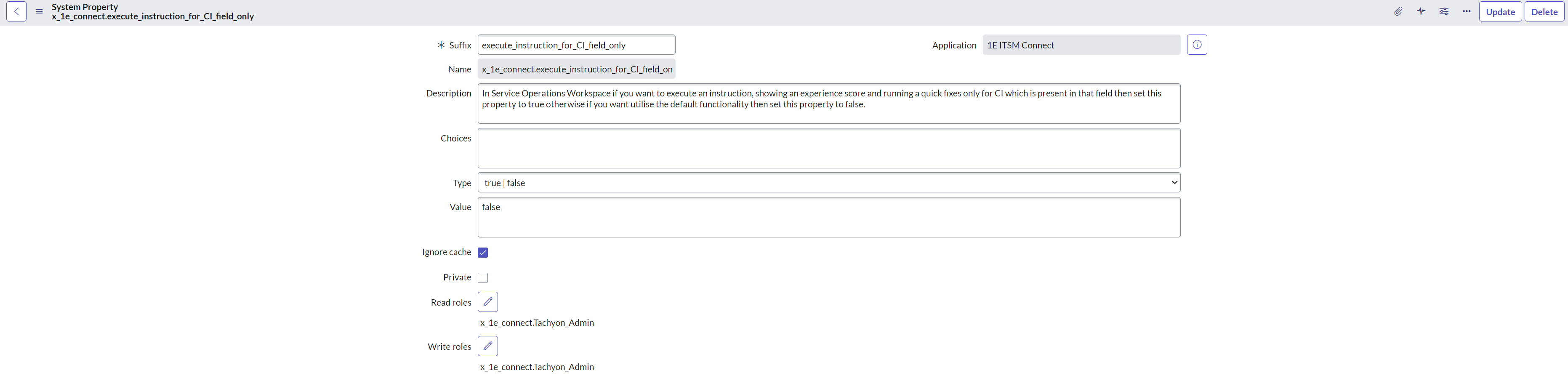 To enable this feature, the system property x_1e_connect.execute_instruction_for_CI_field_only has to be configured, and the value is set to true. By default, this property is set to false.
