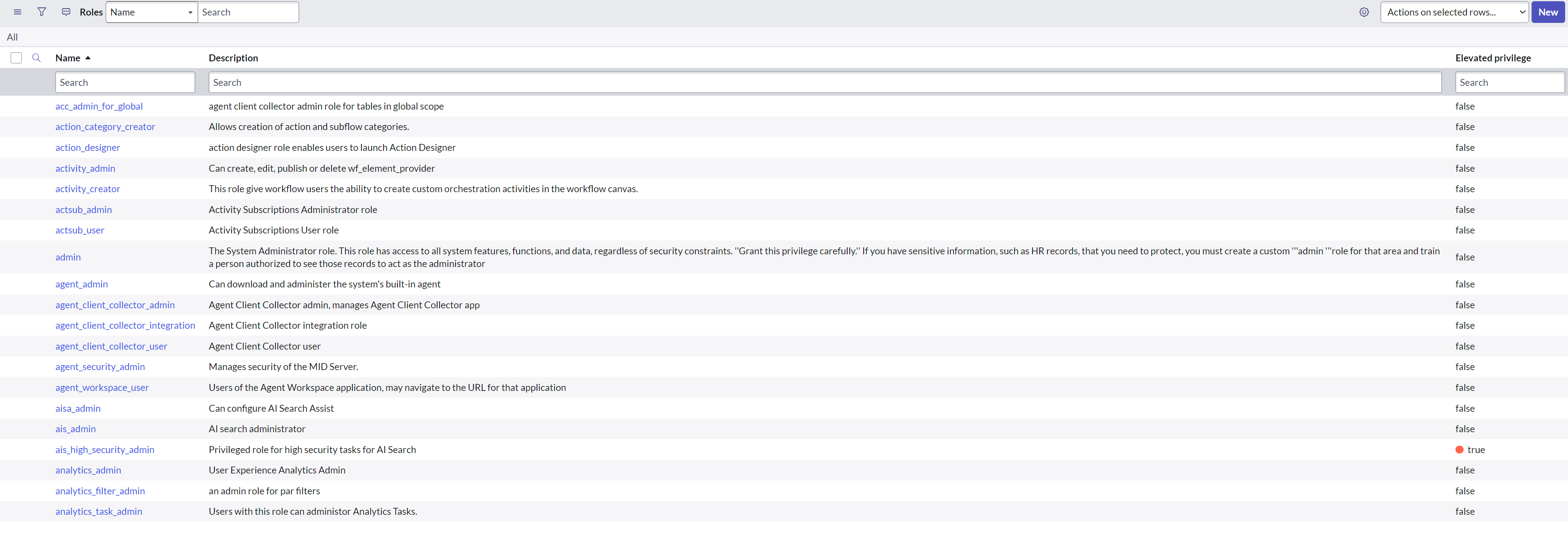 To open the Roles table, type sys_user_role.list in the filter navigator and press enter.