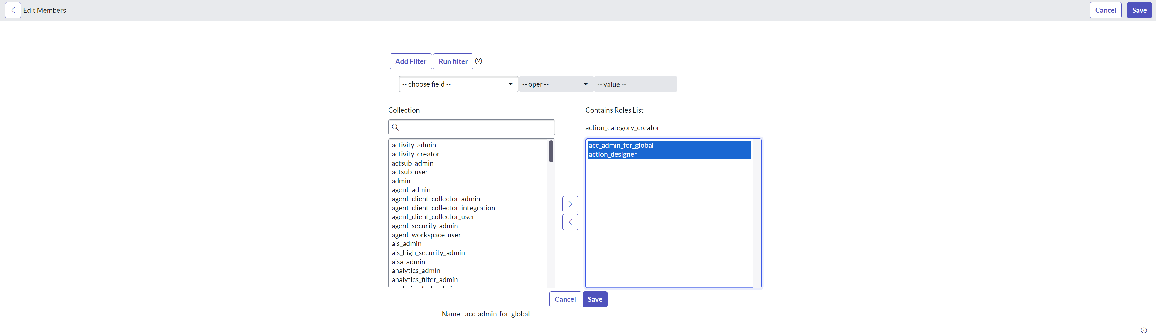 This opens the Edit Members page. From here, add all the instruction sets you want to assign a role(s) to from Available to the Selected list box. Click Save to save the changes.