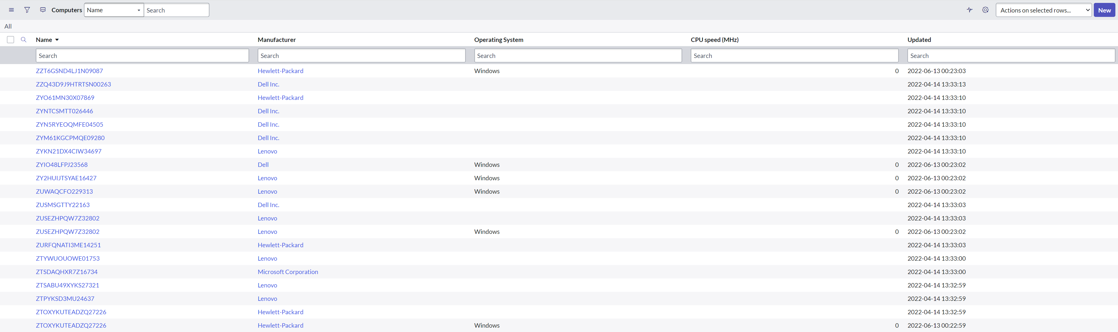To navigate to the Computers page, type cmdb_ci_computer.list table name in the filter navigator and press enter. This opens up the Computers page in a new tab. The Computers page provides useful information like end user devices details.