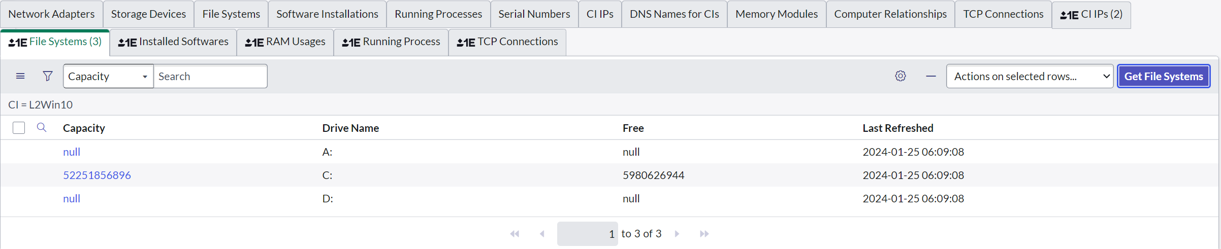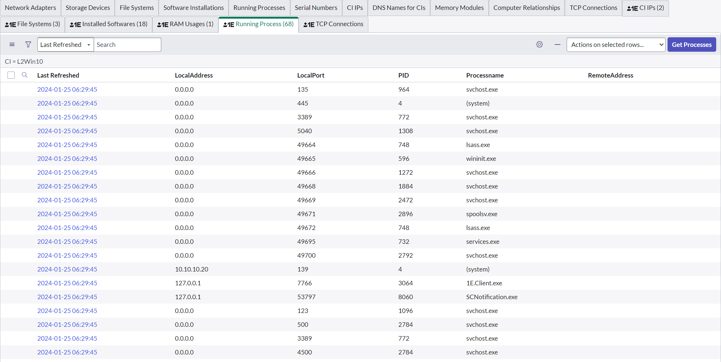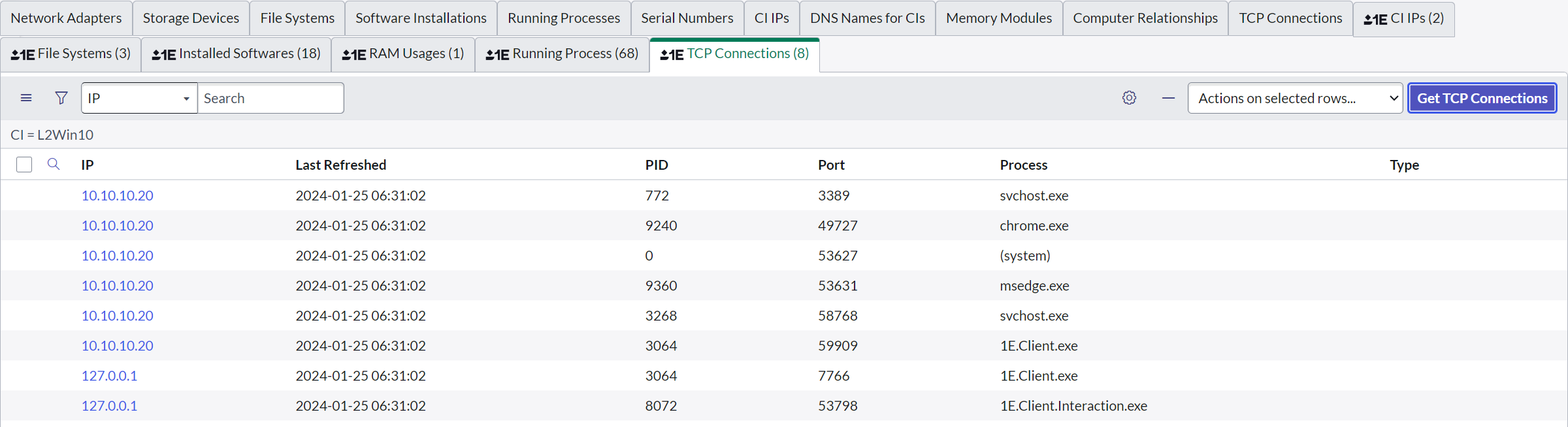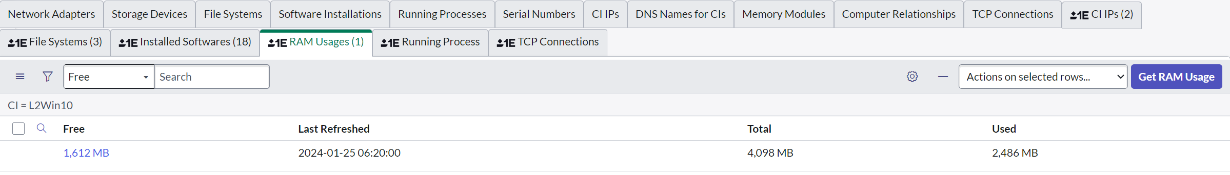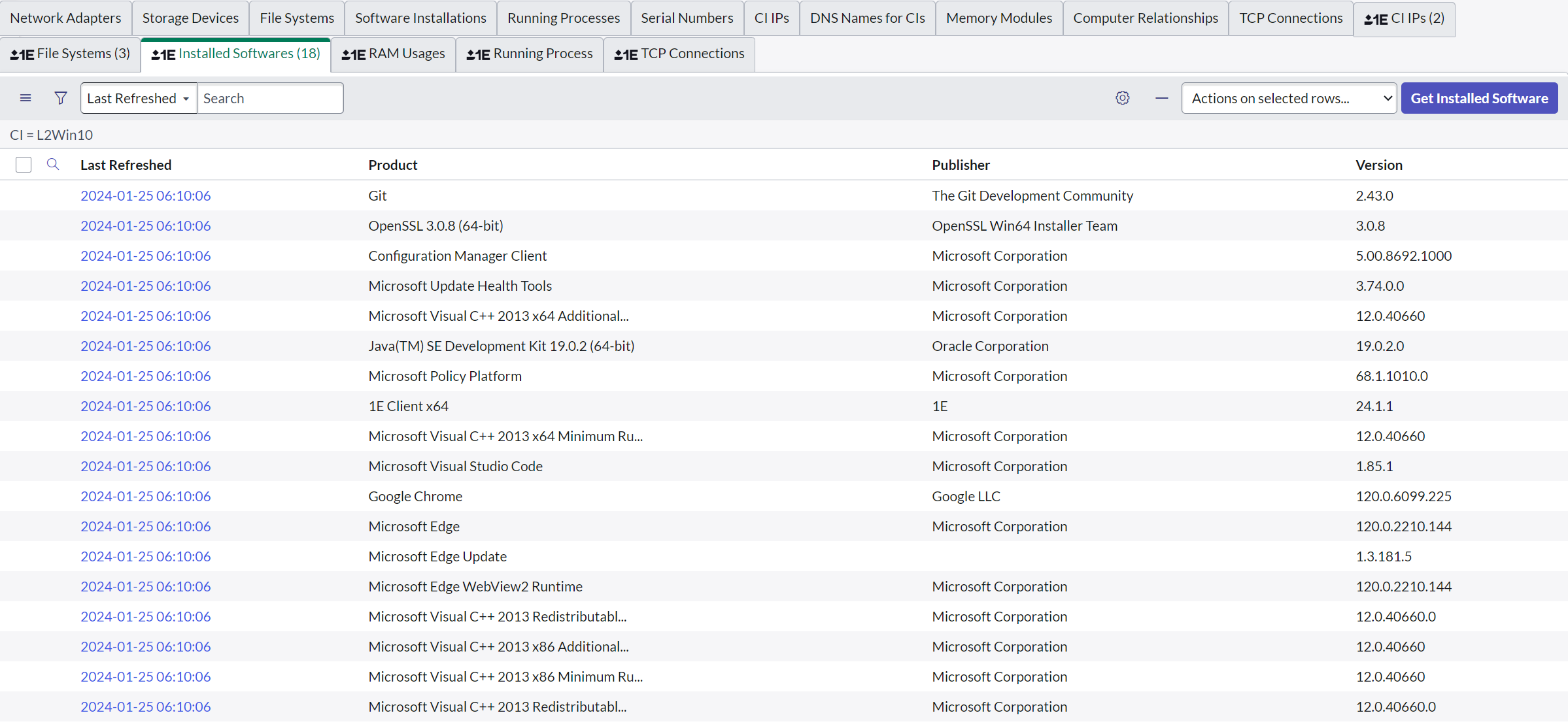 Clicking the associated Get button on a particular tab triggers the related 1E instruction to fetch associated data, as you can see in the following examples.