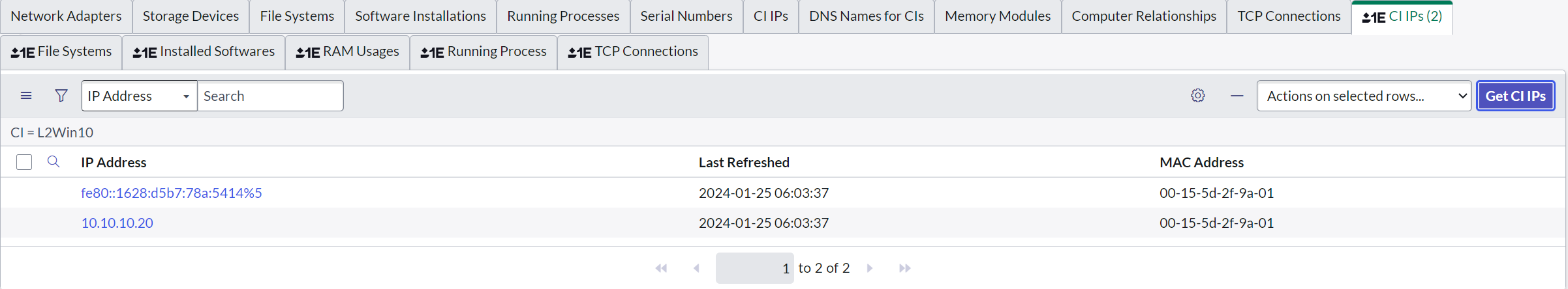 Clicking Get CI IPs fetches IP details of the selected device, like: