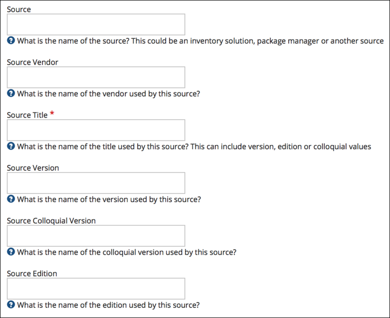 Enter the source inventory data that will be used to link to this product and version combination: