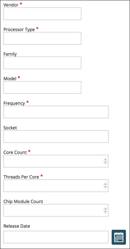 Processor Type - enter the type of processor such as desktop, server