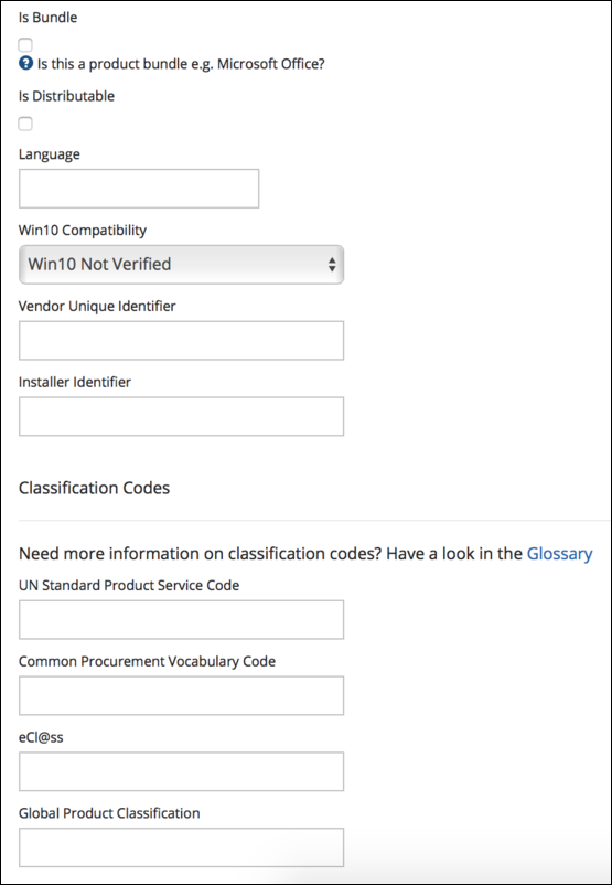 In the Product Information screen, update the fields as necessary.