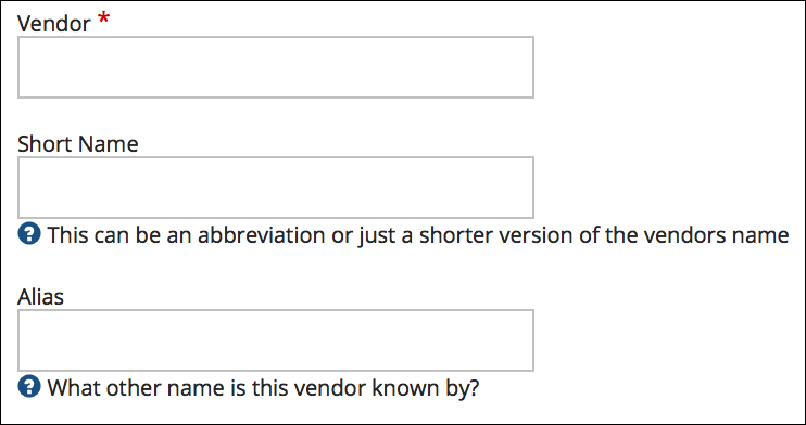 Vendor - enter the name of the vendor