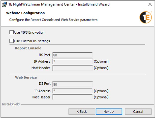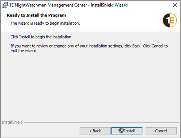 By default, these components are installed to C:\Program Files (x86)\1E\NightWatchman Management Center\