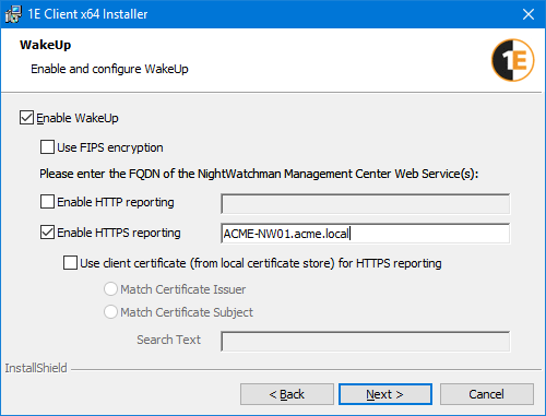 If clients previously had both NightWatchman and WakeUp agents enabled and you upgrade to NightWatchman 7.3 or later versions first, the WakeUp agent will be uninstalled but the previous settings retained. When you installed the 1E Client with the WakeUp module enabled, the previous settings will be used (unless you override them in the installation command line).