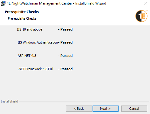 Background checks are run to ensure common prerequisites are met. If a prerequisite fails, the components dependent on those prerequisites are not installed. Later screens may require prerequisites for optional features.