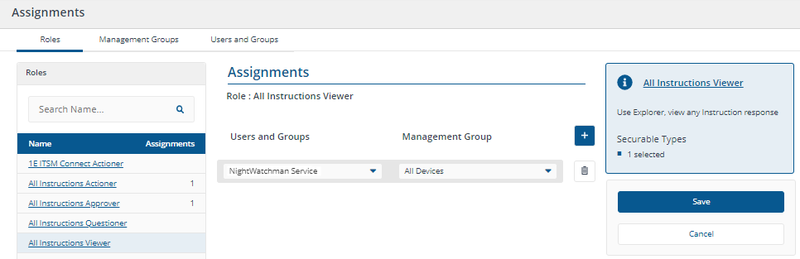 In the Users and Groups column, search for the NightWatchman Management Center Console service account that you added earlier, and select it.