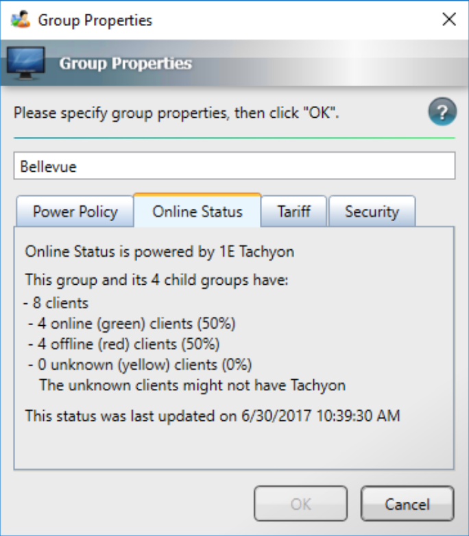 In any group under Location or Organisation, the Properties dialog now includes an Online Status tab.