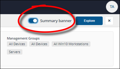 The Summary banner displays a quick summary of the information provided in the various tabs displayed in the Device View. It can be viewed by toggling the Summary banner switch to on.