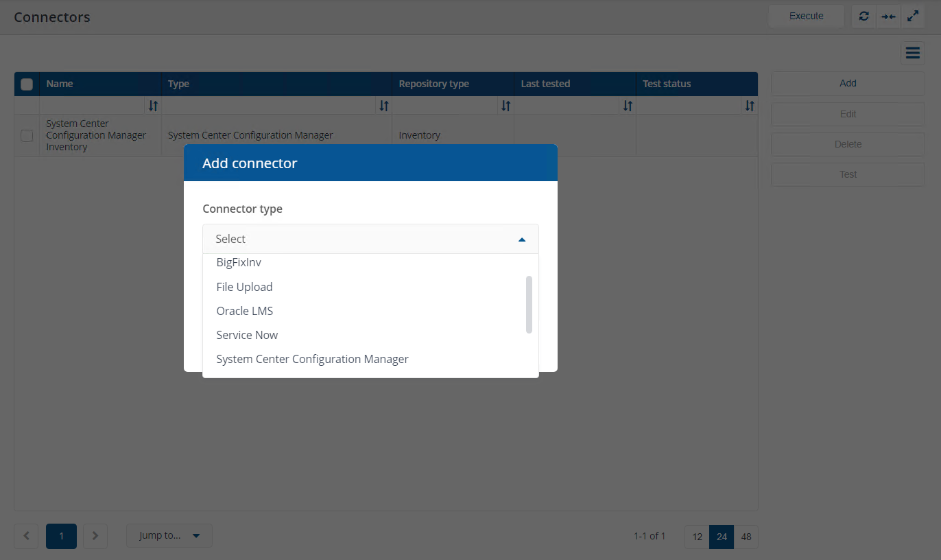 System Center Configuration Manager connector: Connects to a Configuration Manager database and pulls in inventory and usage data.